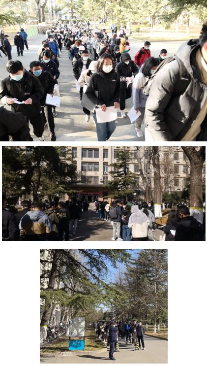 考试当天,教务处与学校多个部门通力配合,为考生提供多种服务。考试入场环节安排多人专岗负责查验工作,结合现场实际情况,有效控制人员行进速度和间距。