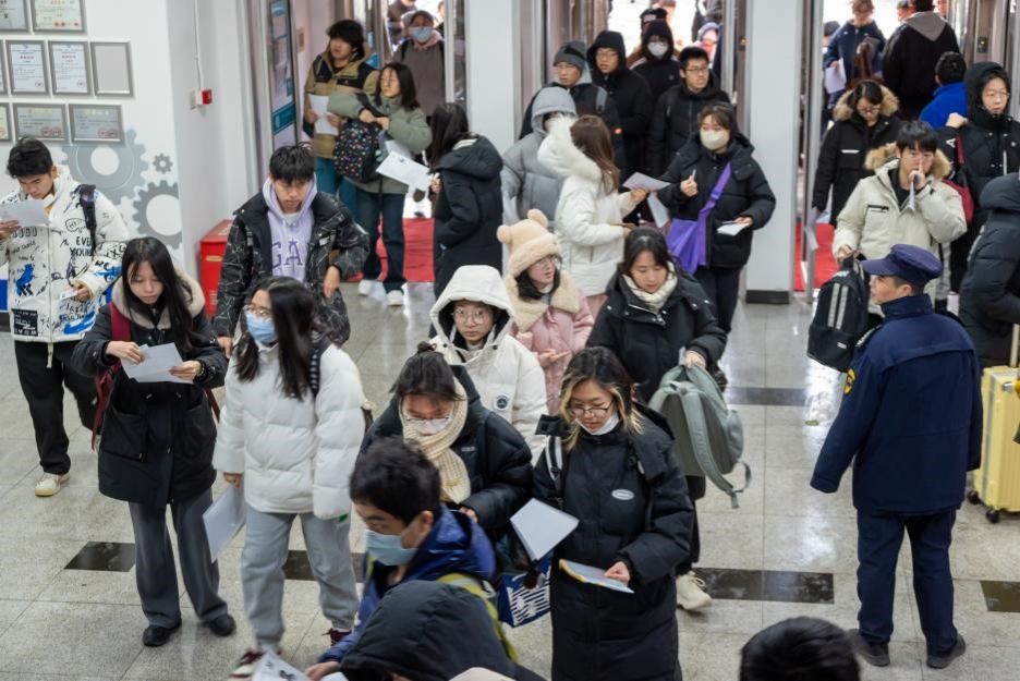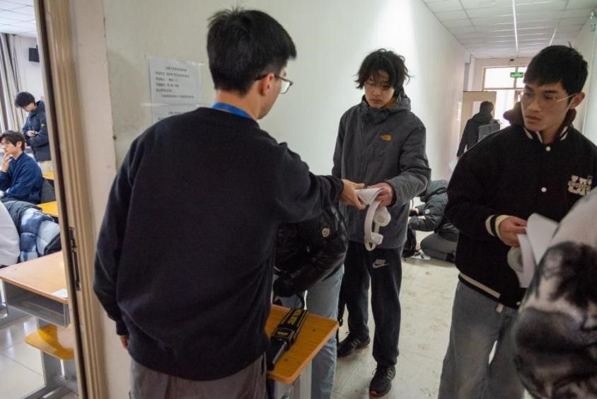 考试当天,为应对恶劣天气下通州校区考生到校本部考点的交通问题,学校安排10辆大巴车将450多名通州校区考生提前送抵校本部。尽管气候寒冷,但考务小组有效地应对了所有挑战。整个考试过程,考务人员、后勤团队、医疗支持团队和其他工作人员各司其职,确保了考试的平稳进行。