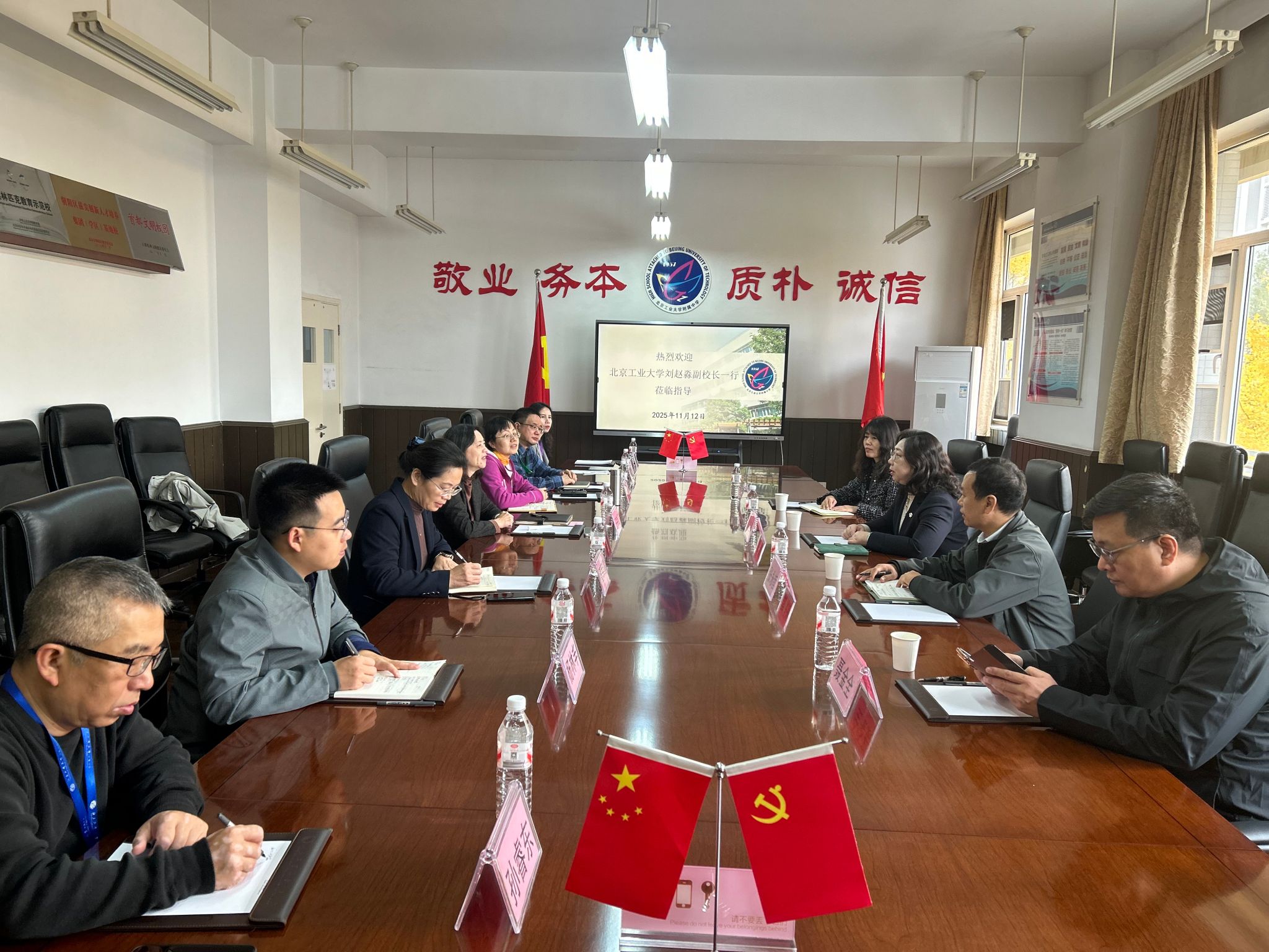 11月12日,副校长刘赵淼率队赴工大附中进行工作调研。教务处长、基础教育发展中心主任张永哲、副主任龙英等陪同调研。工大附中校长王京红带领校领导班子成员及相关部门负责人参与座谈交流。