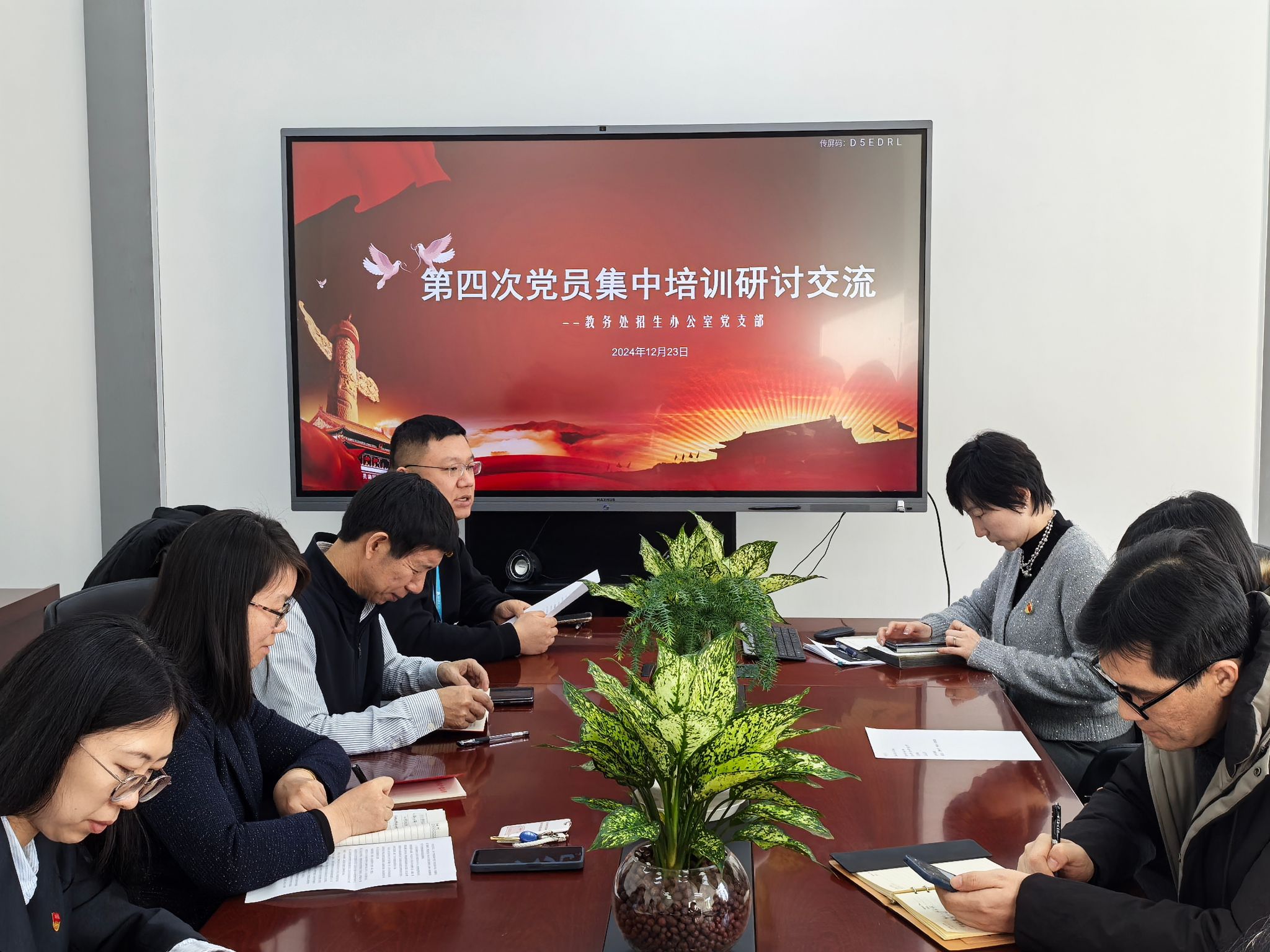 为进一步贯彻落实全国教育大会精神,深刻理解和把握关于加快建设教育强国的部署要求,围绕怀进鹏部长在党员集中培训的授课内容,巩固学习成果,12月23日,机关党委教务处招生办公室党支部组织党员集中培训(第四课)交流研讨会,会议由支部书记罗琳同志主持。