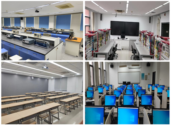 教育教学保障工作覆盖了多种类型的教学场所,包括基础教学实验室的搬迁与改造,如计算机学院机房、外国语学院语音室、信息科学技术学院电路实验室、机械与能源工程学院工程训练中心和物理与光电工程学院物理实验室,以及艺术设计学院、建筑与城市规划学院、体育部专用教室设备回迁。此外,深度挖潜教学资源,完成12间教室和2间机房全面改造升级,新增834个学生教室和机房空间,以满足新的教学需求。