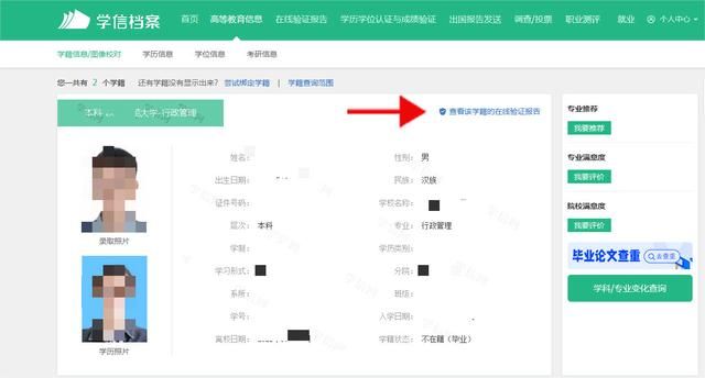 5.查看“该学籍的在线验证报告”。