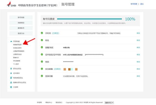 4.点击高等教育信息。